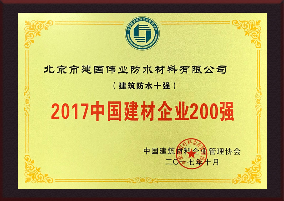 2017中國建材企業(yè)200強(qiáng)(建筑防水10強(qiáng)) |