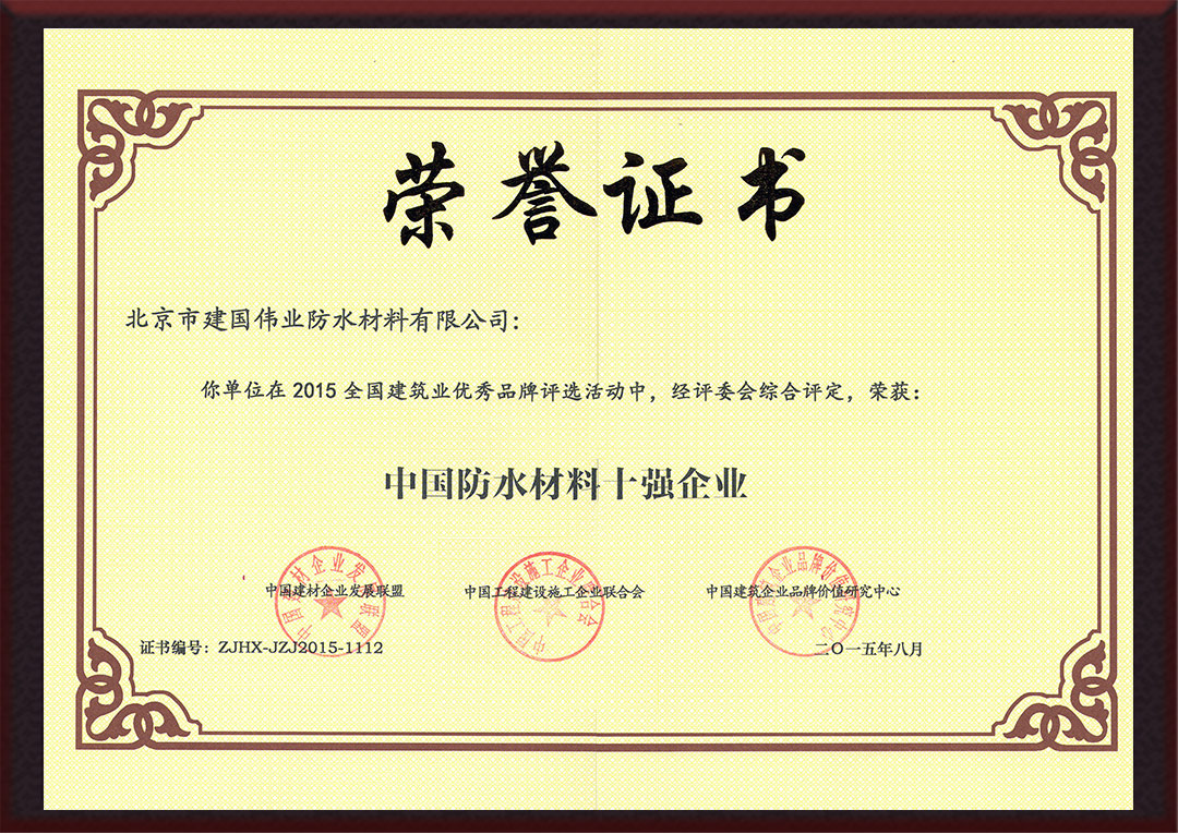中國防水材料十強(qiáng)企業(yè) |
