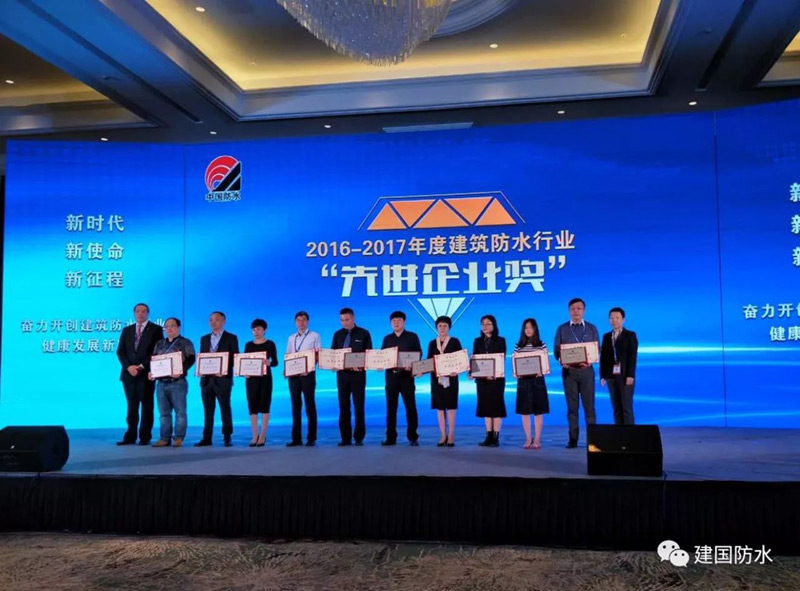 建國(guó)偉業(yè)集團(tuán)董事長(zhǎng)李勇先生帶隊(duì)參加本次會(huì)議。會(huì)議中建國(guó)偉業(yè)集團(tuán)憑借自身實(shí)力,榮獲“2016-2017年建筑防水行業(yè)先進(jìn)企業(yè)”稱號(hào)。