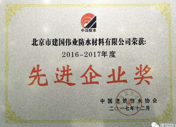 2017年12月7日,由中國建筑防水協(xié)會主辦的《全國建筑防水行業(yè)質(zhì)量提升工作大會暨2017年建筑防水行業(yè)年會》在海口正式召開。本次會議對2017年防水行業(yè)取得的成績和質(zhì)量提升方面面對的問題、挑戰(zhàn)進行了詳細解讀,對質(zhì)量提升提出了新的要求和建議,并對質(zhì)量提升及科技進步企業(yè)進行表彰。建國偉業(yè)集團榮獲“2016-2017年建筑防水行業(yè)先進企業(yè)”稱號。